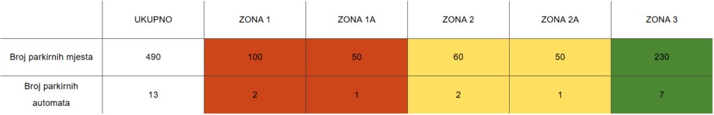 U zonI 1A parkirna mjesta se ne mogu uzeti u zakup